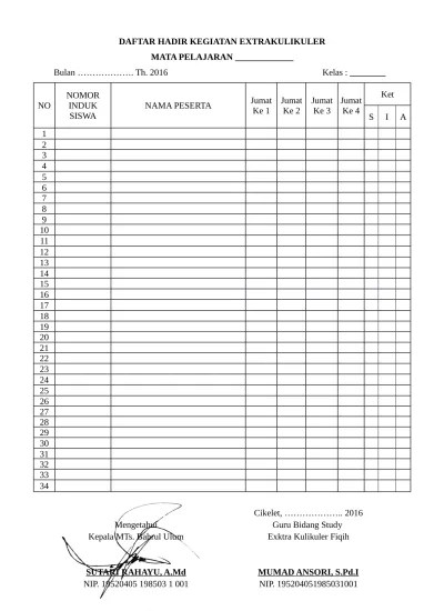 Contoh Daftar Hadir Siswa - Buku Daftar Hadir Siswa Masnurul / Check spelling or type a new query.
