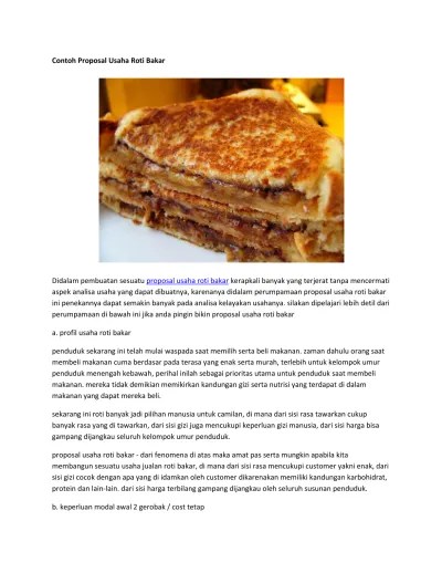 Proposal usaha " pisang goreng coklat keju" di susun oleh: Sale pisang sari rasa pdf document. Contoh makalah business plan atau proposal usaha tentang bisnis pisang. Peluang bisnis pisang goreng coklat keju dan analisa usahanya. Contoh proposal usaha makanan khas daerah.